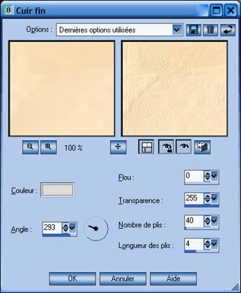 7 - Effet – Effets de textures – Cuir Fin avec ces configurations